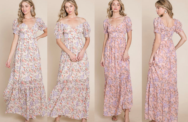 Floral Print Puff Sleeve Maxi Dress