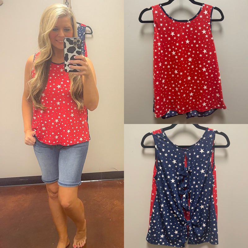 Star Sleeveless Top with Tie Knot in Back