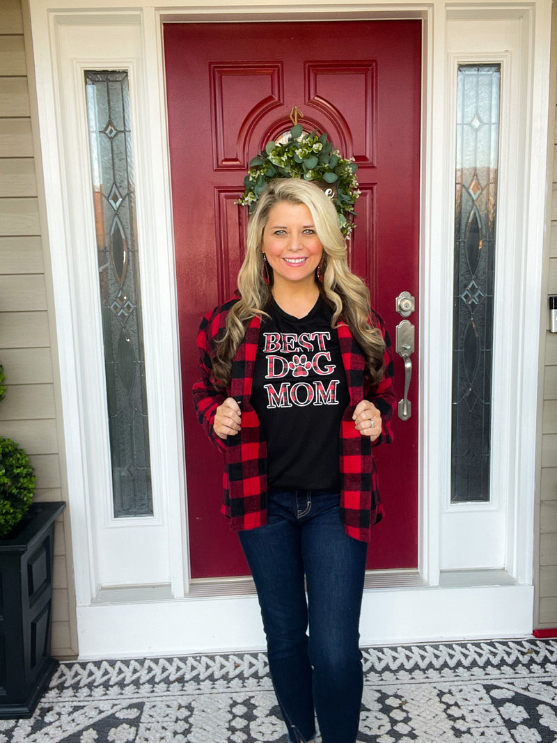 Buffalo Plaid Dog Mom T-shirt
