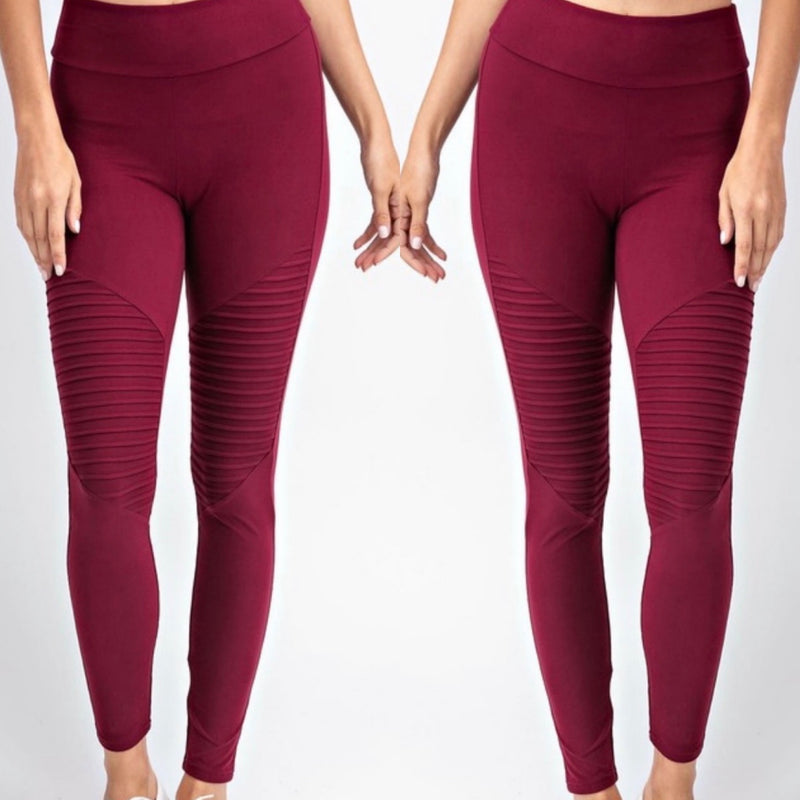 Burgundy Moto Leggings